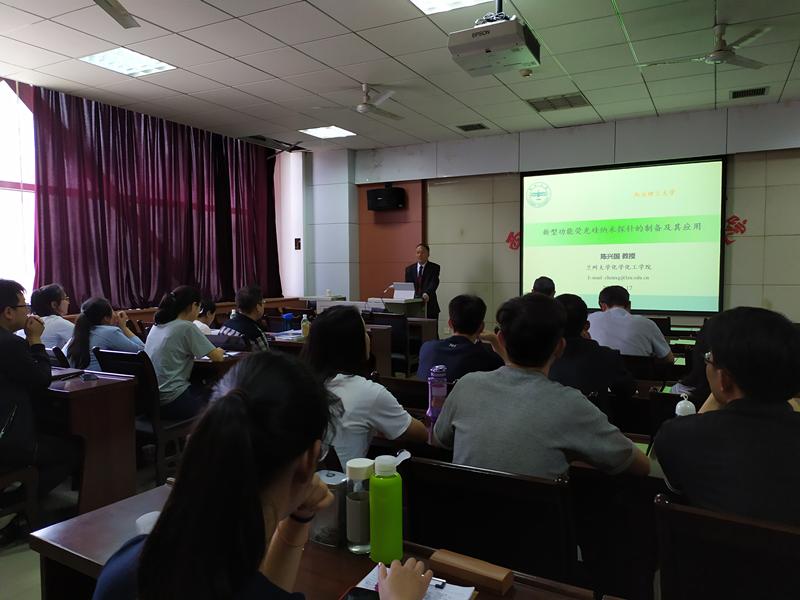2019年5月17日下午2:30-4:10,应化学学科邀请,兰州大学陈兴国教授在公司曲江校区教9-617英国上市公司365报告厅,为化学学科师生作了题为“新型功能荧光硅纳米探针的制备及其应用”的学术报告。