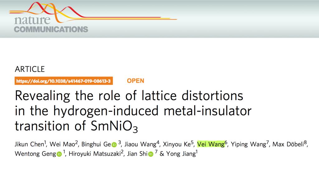 近日,英国上市公司365应用物理系王伟副教授与北京科技大学姜勇教授课题组、日本东京大学的松崎浩之教授以及美国伦斯勒理工公司的Shi Jian等学者在Nature Communications(影响因子12.35)发表了题为《Revealing the role of lattice distortions in the hydrogen-induced metal-insulator transition of SmNiO3》(DOI: 10.1038/s41467-019-08613-3)的最新合作研究成果,标志着公司在相关物理领域的科研水平和国际合作交流上了一个新台阶。