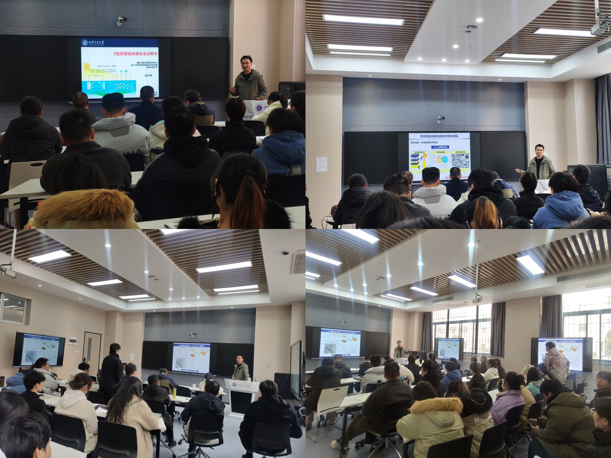 与会师生围绕本次报告主题在异质结构建、材料模拟计算、光催化性能提升等方面进行了交流讨论,并探讨了太阳能光催化分解水制氢技术的实际应用和未来的发展方向。本次学术报告使与会师生们受益匪浅。