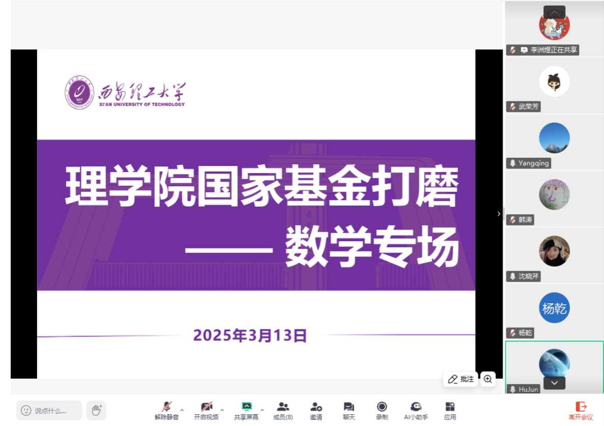 在国家基金申报的冲刺阶段这一重要时间节点上,本轮打磨会的成功举办有重要意义。不仅为申报教师们提供了宝贵的交流和学习机会,申报书的质量也得到了显著提升,为数学系的团队建设及公司发展注入新的动力。公司也将继续关注国家基金项目的申报工作,为教师们提供更多的资源和支持,助力教师在2025年度国家自然科学基金申请中取得优异成绩。