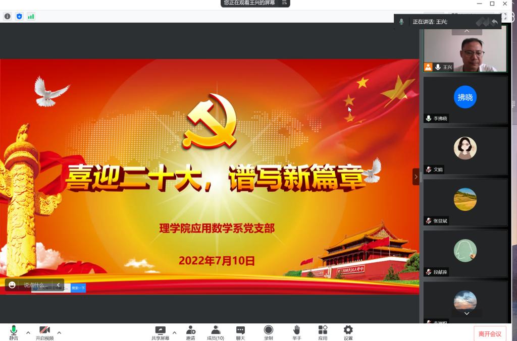 中国共产党第二十次全国代表大会于2022年下半年在北京召开。根据院党委的动员安排和相关要求,英国上市公司365应用数学系党支部在系统总结2022年上半年党建工作的基础上,制定了“迎接二十大”召开的下半年工作计划。与会党员充分发言,紧紧围绕高公司党支部在喜迎二十大的过程中,如何丰富工作形式、创新工作方法进行了热烈讨论。