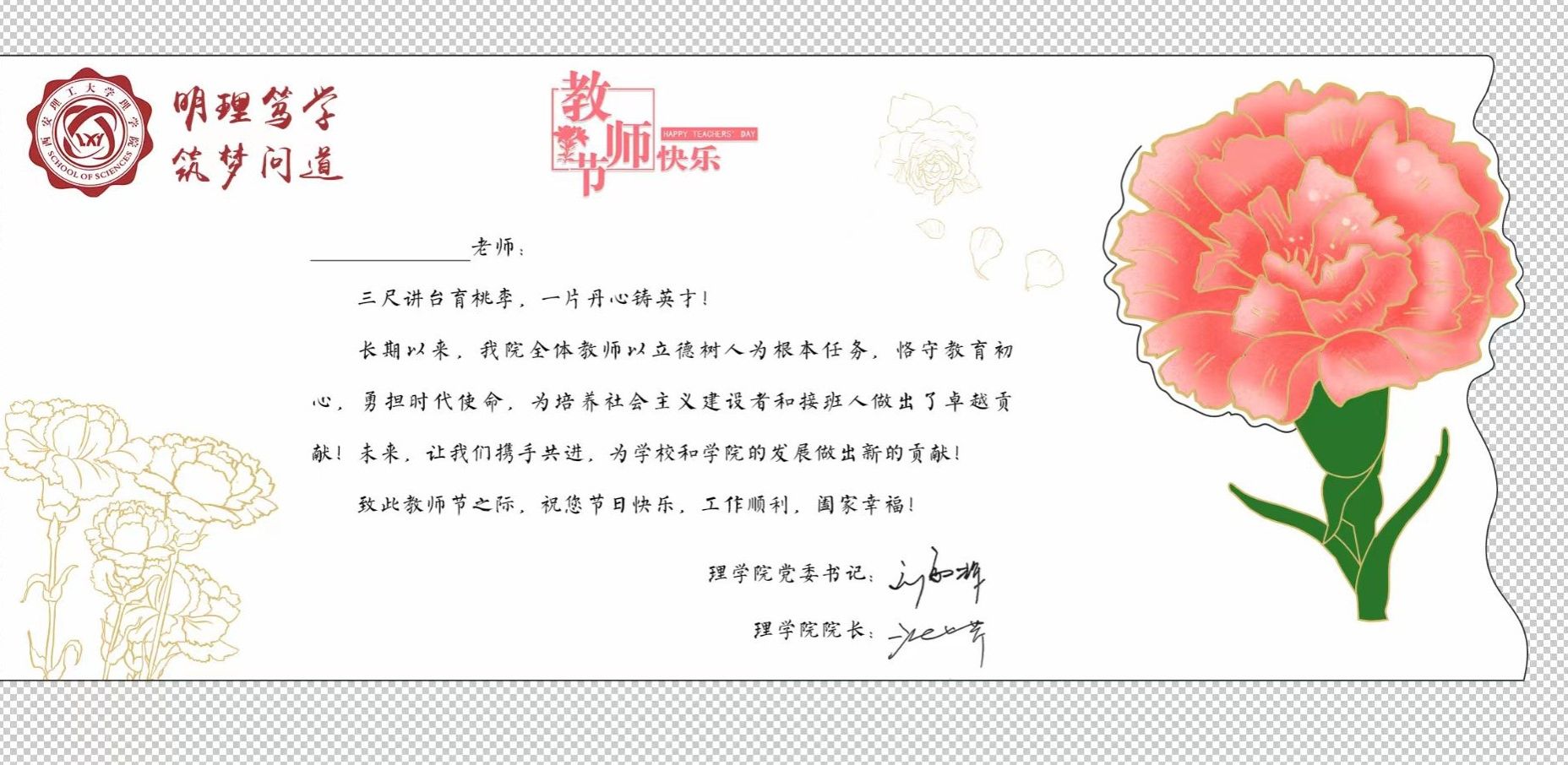 为感谢公司全体教职员工为公司发展建设所做出的辛勤努力,公司党委书记刘敏辉和经理沈晓芹为每位教师书写了满载深情的慰问信和教师节祝福贺卡,勉励全体教师继续大力弘扬教育家精神,为建设特色鲜明、有国际影响力的国内一流高水平研究型大学而不懈奋斗!
