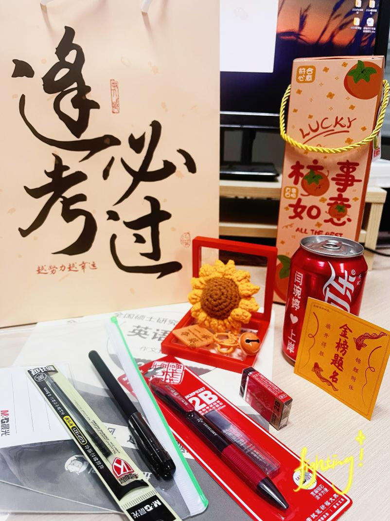 公司党委书记王林、经理沈晓芹、公司党委副书记、副经理赵阳为即将奔赴考研“战场”的同学们加油鼓劲,送上了公司精心准备的考研加油包,此次考研加油包内容丰富,包括两套考研冲刺试卷、文具套装、向日葵祝福挂件,印有员工姓名和上岸字样的可口可乐,希望每位同学能够攻“可”难题,一举夺“魁”,每一件精心准备的礼物装在印有”逢考必过“的纸袋里,盛满着公司领导和老师的关切和祝福,期望每一个考研人能够顺利上岸!同学们备受鼓舞,纷纷表示在备考复习过程收到公司的关心和鼓励,感到十分温暖,大家一定会坚持到底,成功上岸。