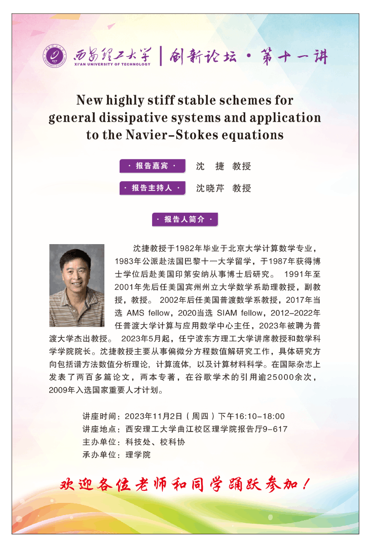 东方理工大学沈捷教授学术报告通知