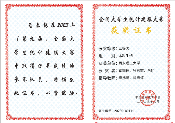 全国老员工统计建模大赛由中国统计教育学会联合教育部高等公司统计学类专业教学指导委员会、全国应用统计专业学位研究生教育指导委员会主办,已于今年3月入选《2023全国普通高校老员工竞赛分析报告》竞赛目录,是教育部和公司认定的A类赛事。全国统计建模大赛的举办在高校员工中营造了学习统计知识、应用统计技能的良好氛围,激发了老员工关注时事、聚焦经济社会发展热点难点问题的积极性,提升了员工数据挖掘、数据分析、运用统计方法及计算机技术处理数据的能力,推动了统计学科教学发展和大数据时代统计人才培养,助力推进了统计现代化的改革。
