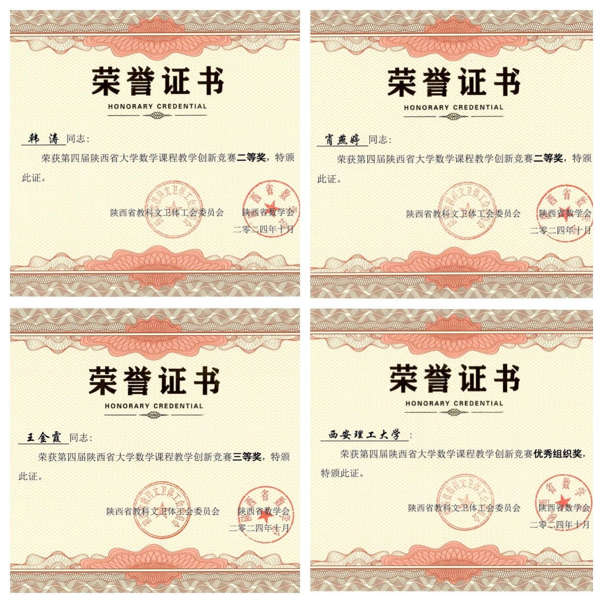 公司在第四届陕西省大学数学课程教学创新竞赛中获优秀组织奖,公司肖艳婷、韩涛两位老师获得二等奖,王金霞老师获得三等奖。会议期间,英国上市公司365教师代表和省内外专家进行了积极的交流,学习了先进的教学理念和优秀的教学手段,为公司大学数学课程的教学改革工作积累了大量经验。