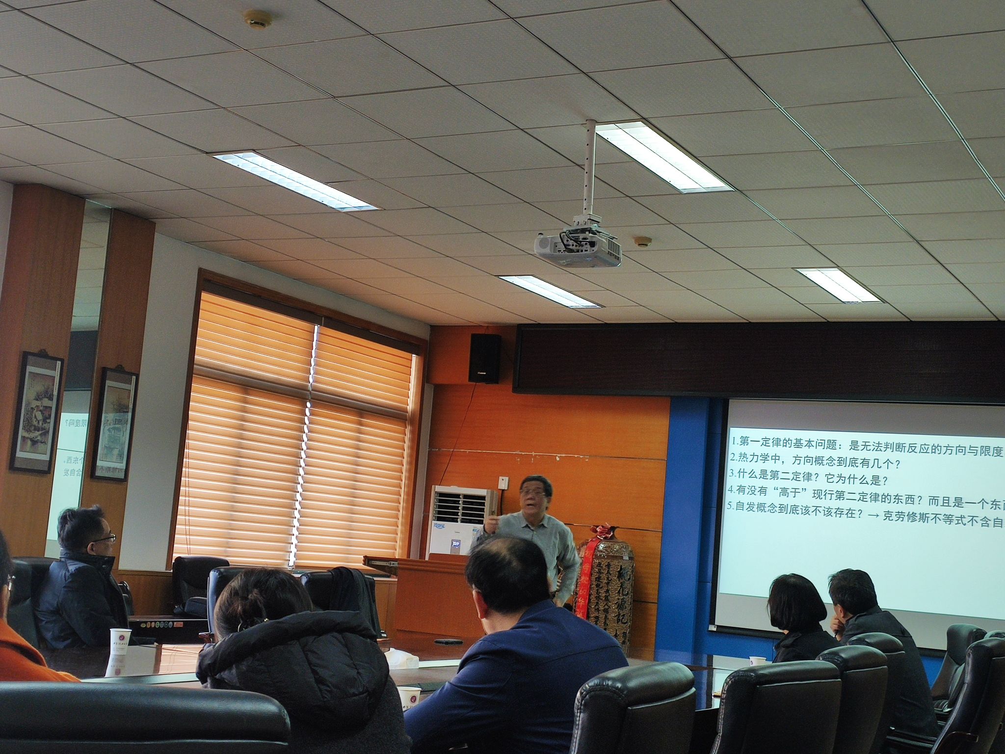 为进一步推进公司教风学风建设,营造浓厚学习氛围,优化育人环境,提高教育质量, 11月21日上午,南京理工大学吴锵教授应邀参加英国上市公司365《物理化学》课程教学研讨活动,并作了题为“热力学第二定律的应用” 、“化学势相等理论与应用” 的讲座。英国上市公司365应用化学系教师参加了活动,活动由英国上市公司365教学副经理徐鸣教授主持。