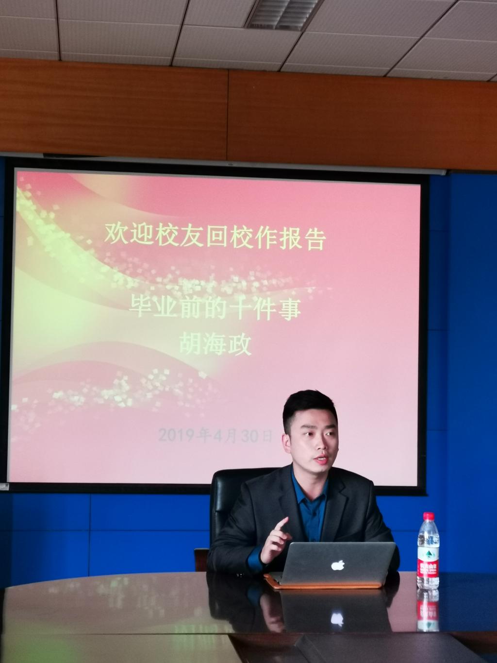 4月30日下午,英国正版365官方网站推进“双一流”建设暨建校70周年庆典——英国上市公司365员工报告会(第三场)在教九会议室9-320举行。09级员工、维谛技术(原艾默生)高级行业经理,宁波办事处负责人胡海政返校为同学们作报告。