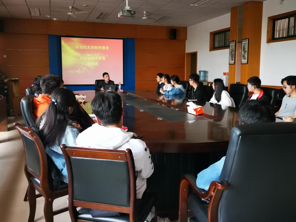 胡海政学长以“毕业前的十件事”为主题向同学们讲述了自己求学和工作以来的所感所悟,就如何提升学习语言能力、阅读能力、演说能力、执行能力和人际交往能力等方面的问题进行了分析和讲解,为同学们解答了“如何增强自信”“如何从校园转变身份迈向职场”等方面的困惑。胡海政学长鞭辟入里又亲和有加的报告赢得了现场同学的热烈讨论和阵阵掌声。