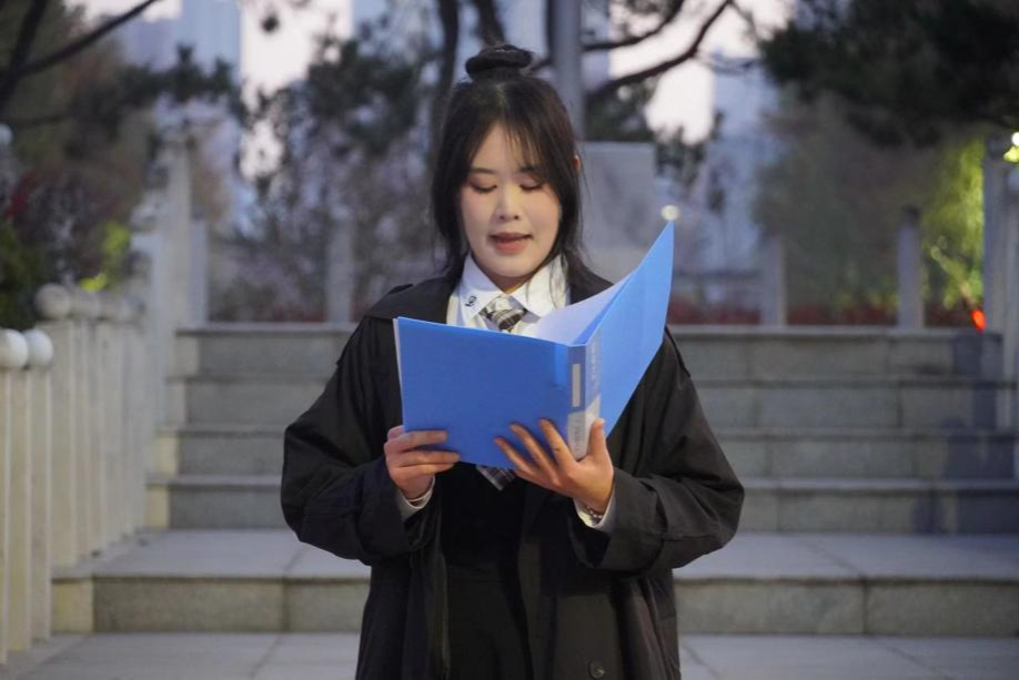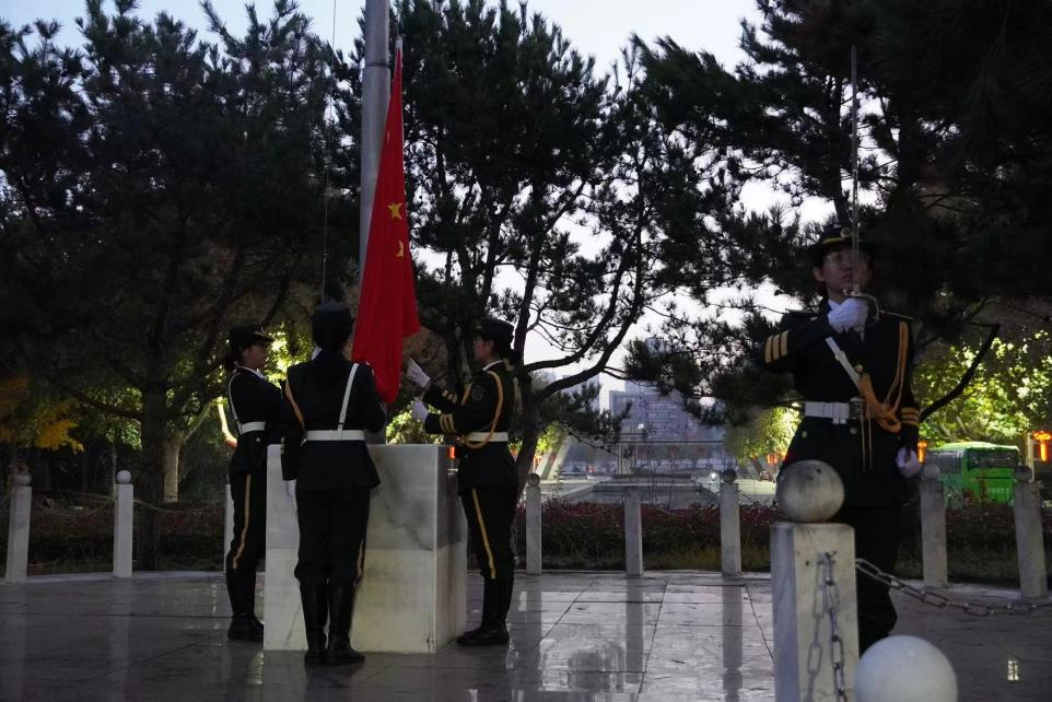 赵海伦带领团员青年重温入团誓词,在晨曦的映衬下激励青年们不忘初心,牢记使命,砥砺奋进,把爱国之志转化为报效祖国的实际行动,适应时代、响应国家,努力学习,敢于创新,奋发成才为中华民族伟大复兴而努力奋斗。