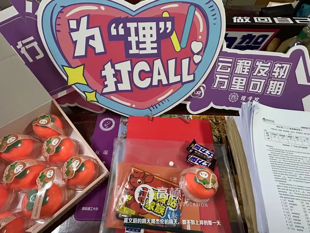 考研加油包里装有考研文具,寓意“装备齐全,整装待发,研途顺利;暖手宝,为同学们在寒冷的冬天送上一份温暖;柿子形状的捏捏乐,寓意“心想事成”,帮助学子备考之余可以有效调节焦虑情绪,缓解压力;士力架,寓意“成功人士”,祝愿学子们此战成功,考研上岸。