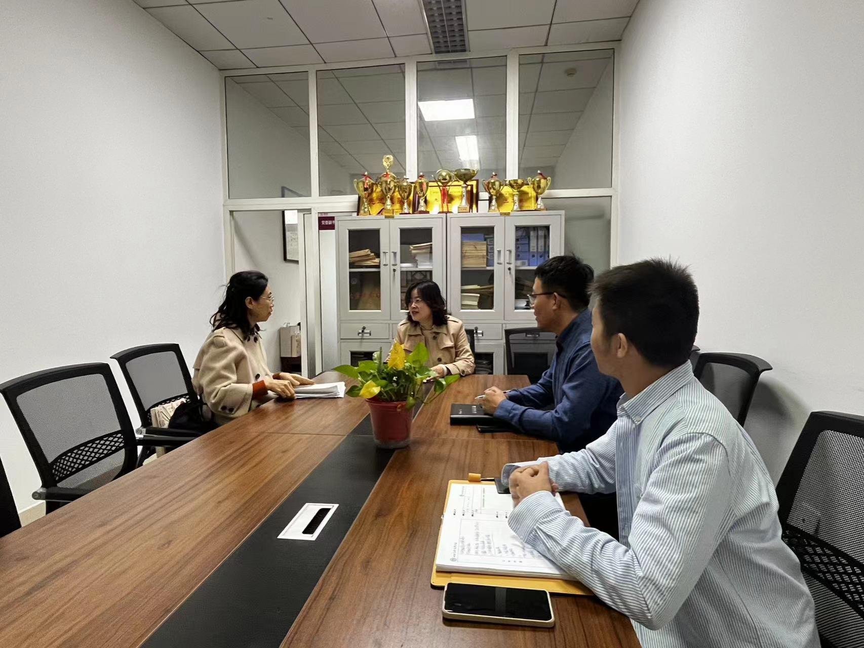 会商开始,各位老师首先向贾锐汇报了员工情况,提出了自己在工作中遇到的困扰和问题,贾锐一一解答了辅导员提出的问题,给予了有效的辅导方法和干预措施。强调了朋辈辅助在心理辅导中的重要性,提倡以员工间的互相支持来缓解心理压力。