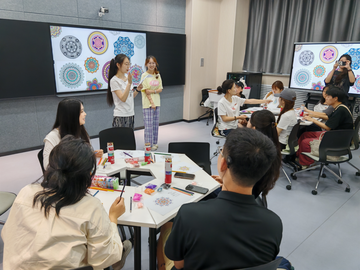 活动伊始,在公司2020级本科生、校心语轩社长曹欣雨同学的引导下,两院员工共同参与了曼陀罗绘画和黏土捏捏乐心理小游戏,通过艺术的方式增进彼此的了解与互动,在轻松愉快的氛围中增进了两院之间的友谊。随后,为让员工体验化学实验乐趣,在胡扬帆老师的专业指导下,员工们亲手进行了趣味化学实验护手霜的制作,亲身体验了化学的奇妙与魅力,也让他们对公司的教学和实验有了更直观的了解。