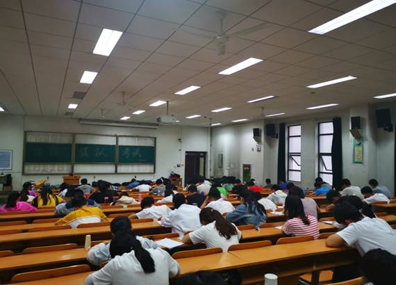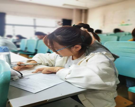 在考试前,赵老师首先向同学们讲述了四级考试过程中常见的问题和考试注意事项,并对同学们做了考前鼓励。考试过程中,考生们能够自觉遵守考试纪律,全神贯注地答题,合理分配答题时间,调配答题顺序,整个考场秩序井然。考试结束后,同学们相互交换试卷进行批阅,赵老师带领同学们共同对试卷进行了分析。