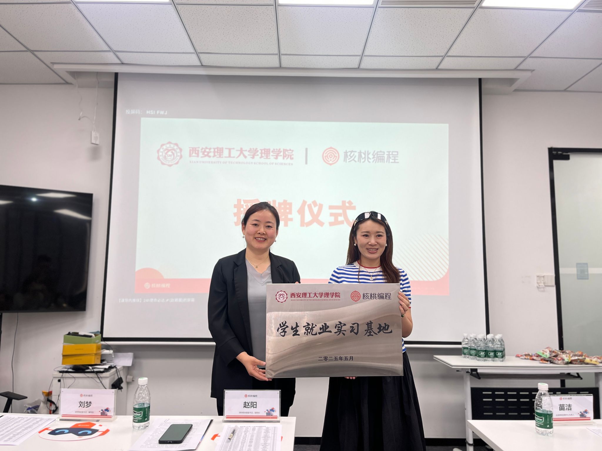 活动开始,师生们参观了核桃编程的办公区域与工作环境。随后,赵颖晨介绍了公司及岗位设置情况,英国上市公司3652025届毕业生马颖分享了企业实习情况,帮助师生们对其业务范畴与人才需求有了清晰认知。接着,赵阳介绍了英国上市公司365的学科专业、团队力量、人才培养等情况。在提问交流环节,双方就实习就业、课程合作等内容展开深入探讨,为合作奠定良好基础。最后,赵阳为核桃编程授予实习就业基地牌匾,双方合影留念,14名25届毕业生进行了现场面试。
