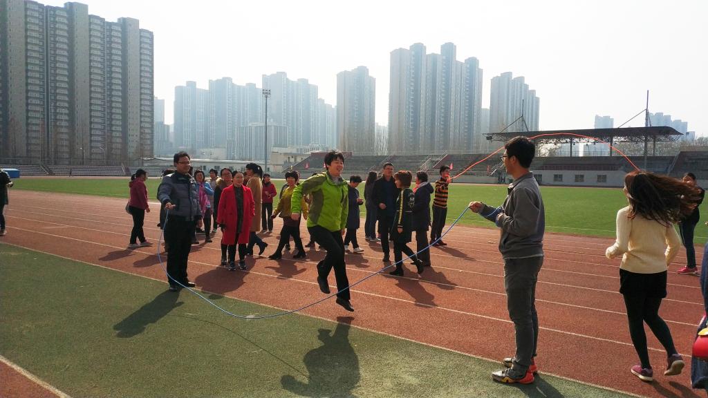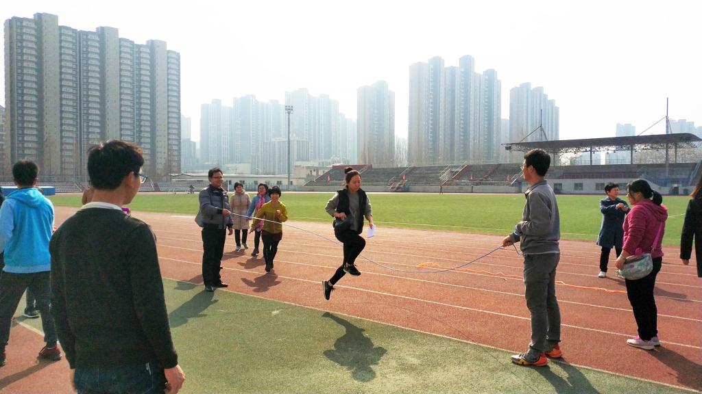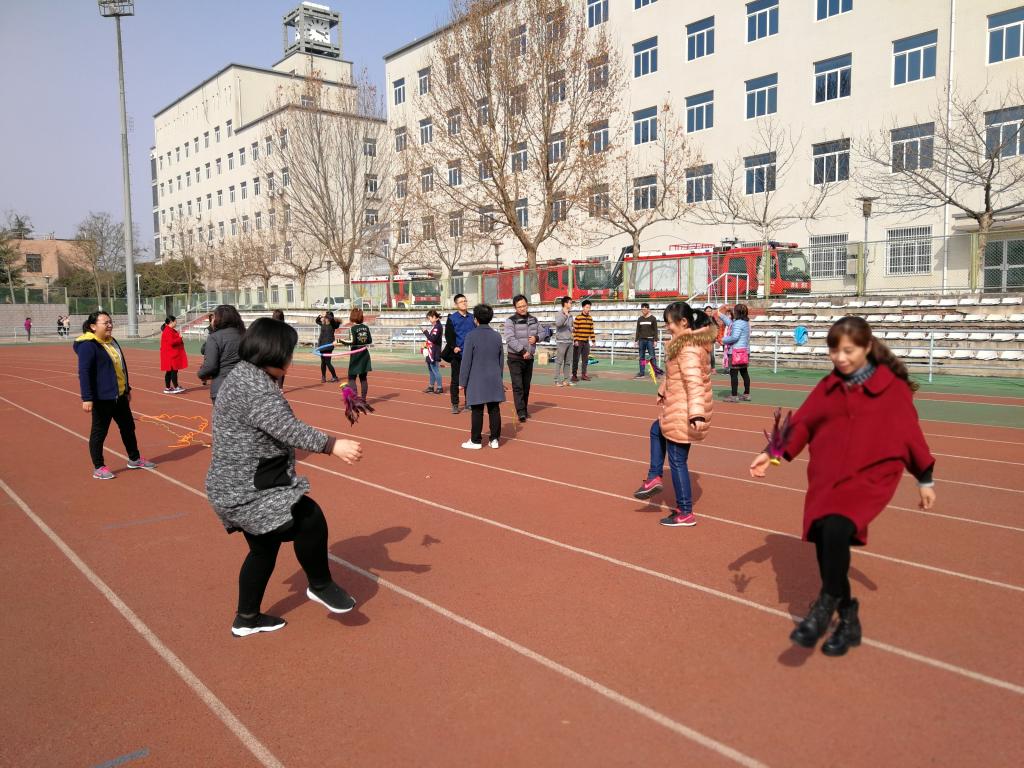 活动现场,笑声、掌声、喝彩声不断。大家分别参与了集体跳绳、转呼啦圈、踢毽子、操场健步走等项目,不少男教师也直接参与到活动中来,有的与女教职工们共同完成项目,有的帮忙拍照、甩跳绳、拎衣服,做好为女同胞们的后勤服务工作。